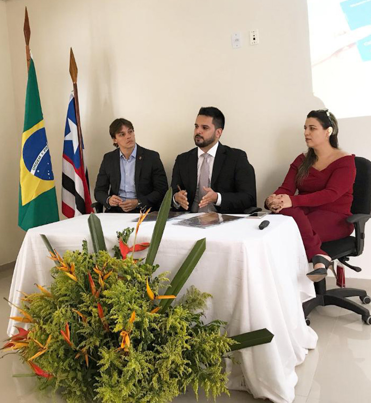 Juiz Paulo Fernando, coordenador da EJUD16, na abertura da semana, ao lado juiz Bruno Motejunas, titular da VT de Bacabal, e juíza Gabrielle Boumann