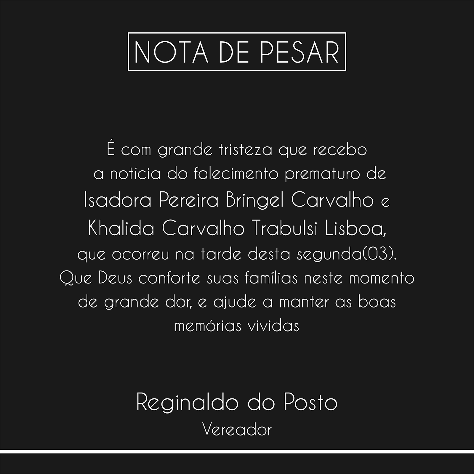 Página inicial Vereador Reginaldo do Posto emite Nota de Pesar por morte de crianças no Chile porAbel Carvalho •17:43 0 Facebook Twitter